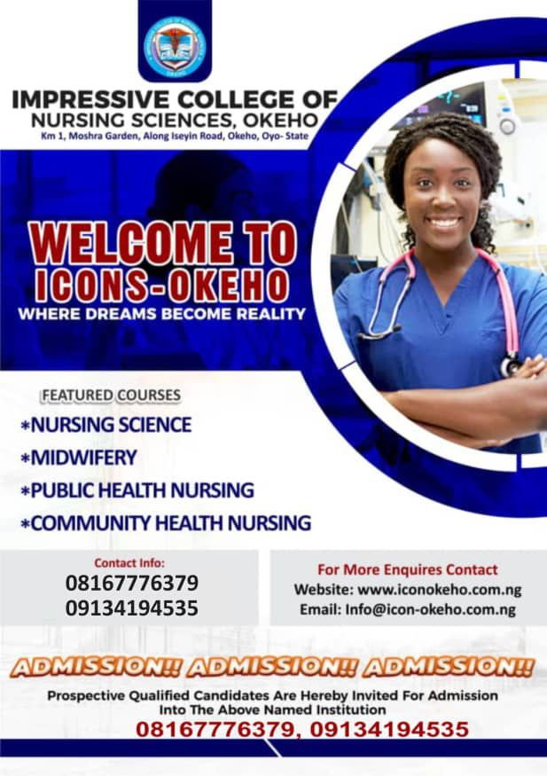 Impressive College of Nursing Sciences, Okeho, Kajola Local Government Area of Oyo State has invited prospective qualified candidates for admission into the academic institution.