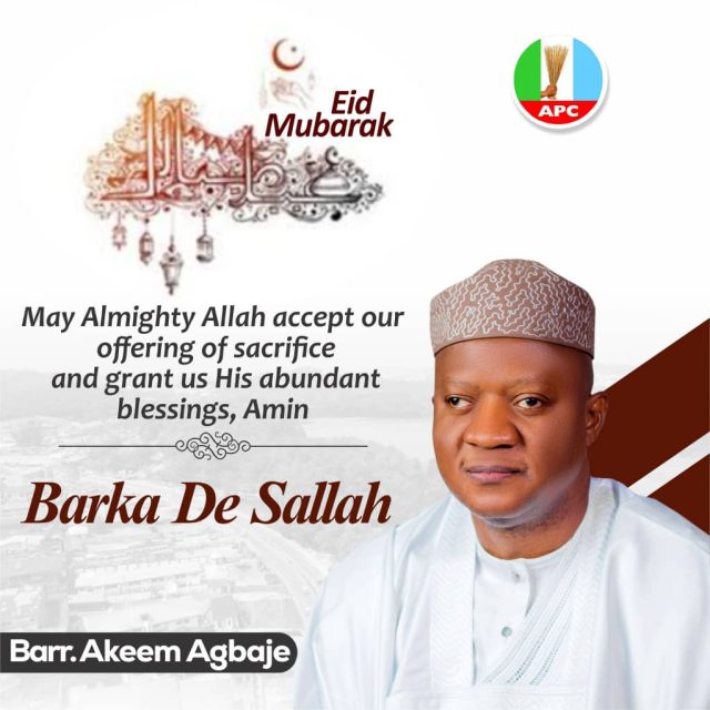 Barr. Akeem Agbaje, a chieftain of the All Progressives Congress (APC) and two-term governorship aspirant in Oyo State, has congratulated the Muslim Ummah in Oyo State and across Nigeria on the occasion of the 2025 Eid-el-Kabir celebration.