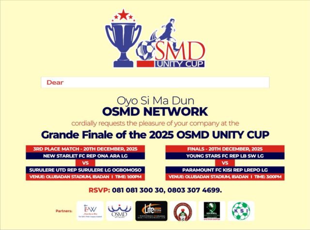“The grand finale will feature the teams from Ona-Ara and Surulere local government councils in the third place match while the representatives of Ibadan South West and Irepo local government councils will slug it out in the final match while the Chairman of the occasion is the Aare Mayegun of Ibadanland and a former National President of the Central Council of Ibadan Indigenes (CCII), Chief Bayo Oyero.