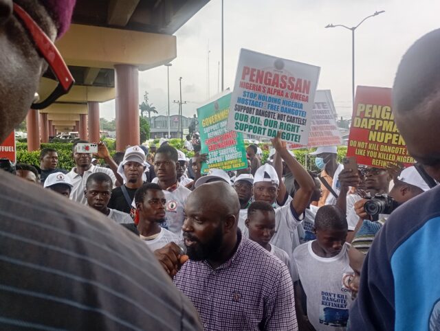 The Coalition of Yoruba Students and Youth Movement on Monday staged a protest in Ibadan against what they described as alleged sabotage by the Petroleum and Natural Gas Senior Staff Association of Nigeria (PENGASSAN) towards the Dangote Refinery, following the recent imbroglio between the two entities.