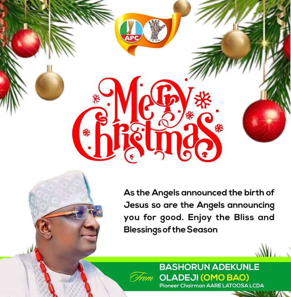 The Pioneer Chairman, Aare Latoosa LCDA and Ibadan North Federal Constituency Hopeful, Bashorun Adekunle Oladeji popularly known as Omo BAO has felicitated Christians and constituents, sought for love and unity as they commemorate Christmas.